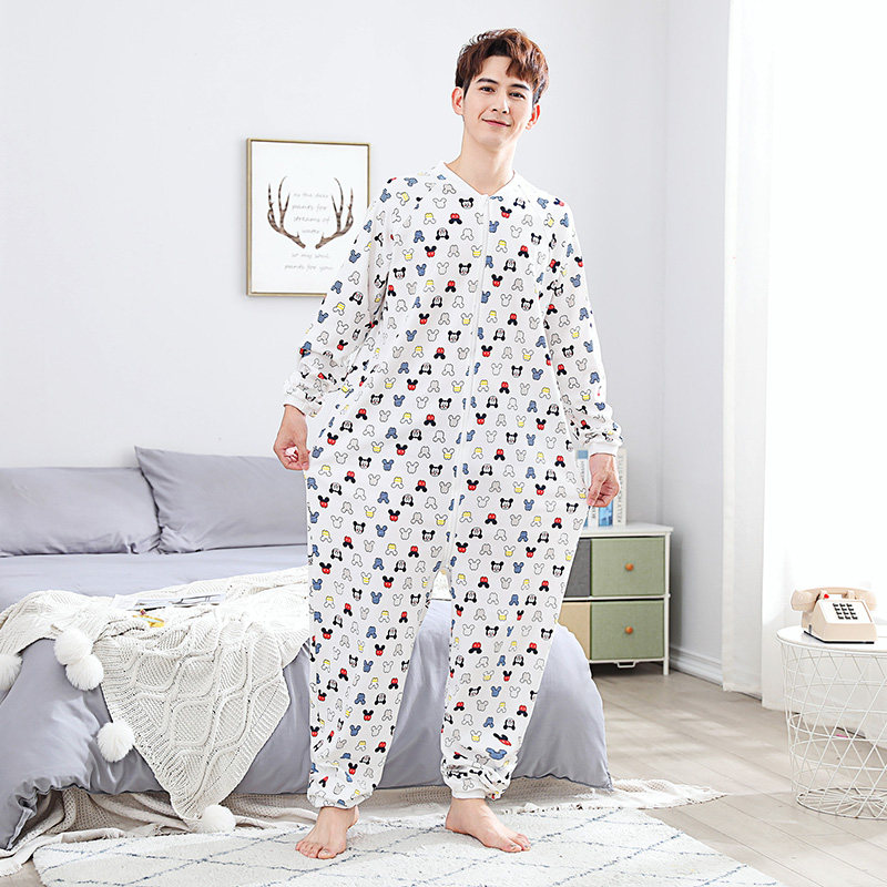 情侣睡衣春夏款全棉连体纯棉双人薄款全身一体式大码成人男士女士