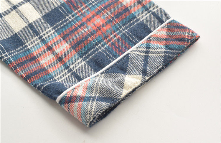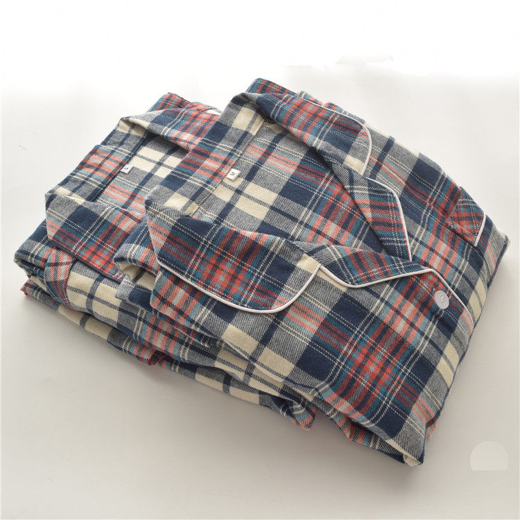 出口日本春秋男士睡衣套装翻领纯棉磨毛绒布格子情侣款居家服女冬