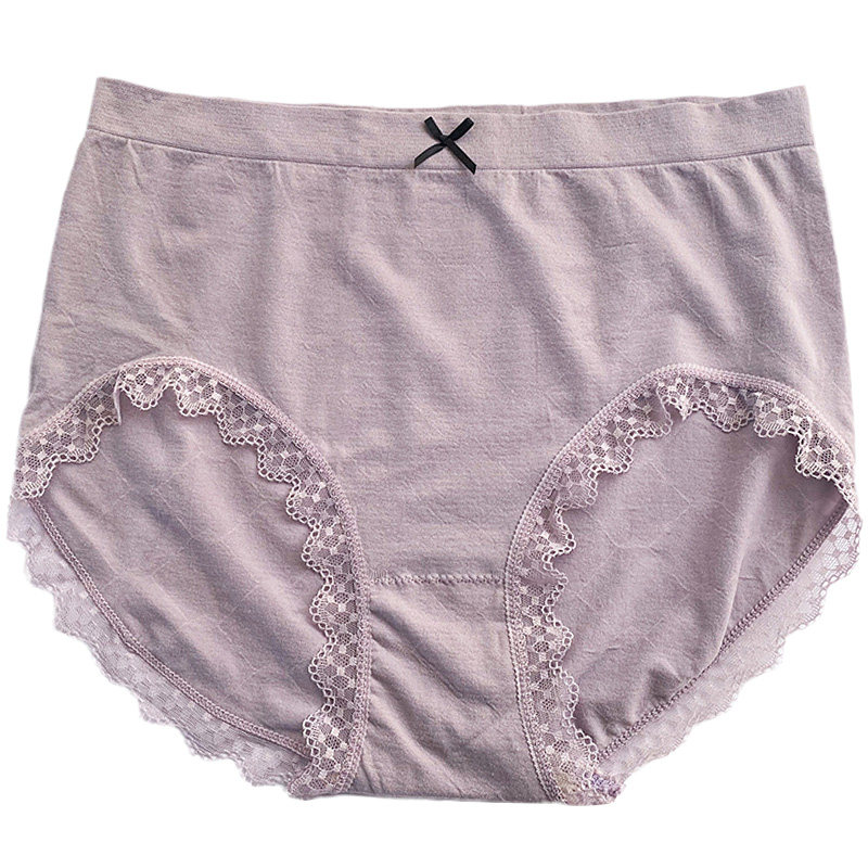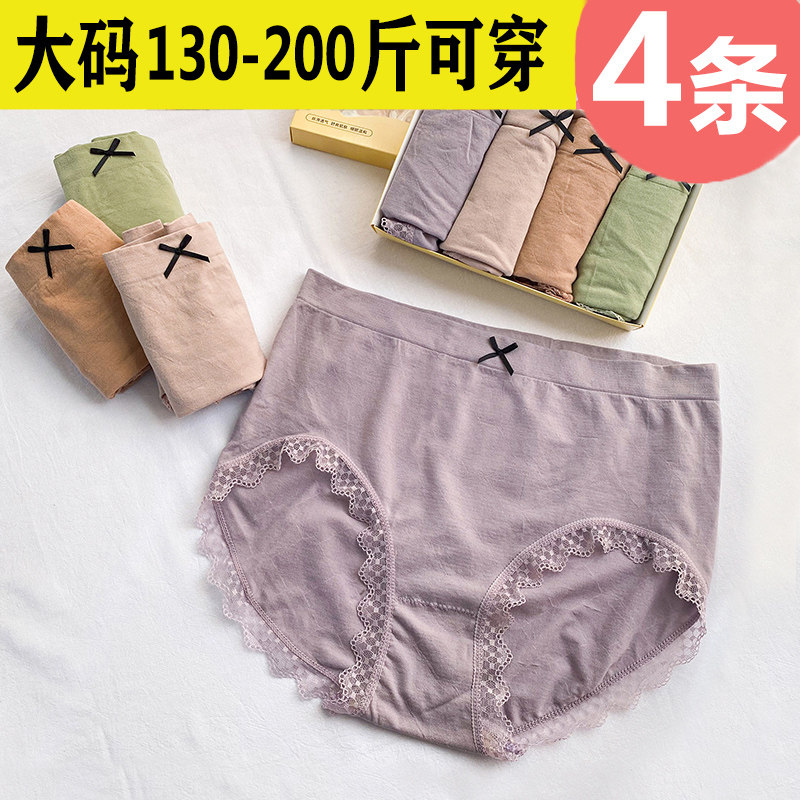 大码内裤女胖mm200斤纯棉中腰简约日系蕾丝加大码女士全棉三角裤