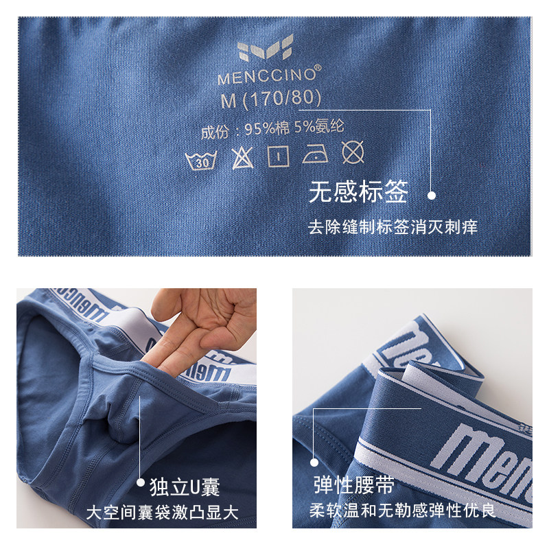 2条男士三角内裤男纯棉透气男生低腰短裤透气舒适三角内裤个性潮