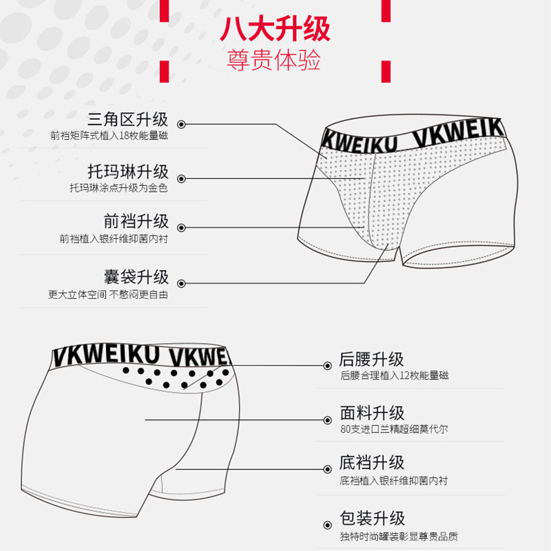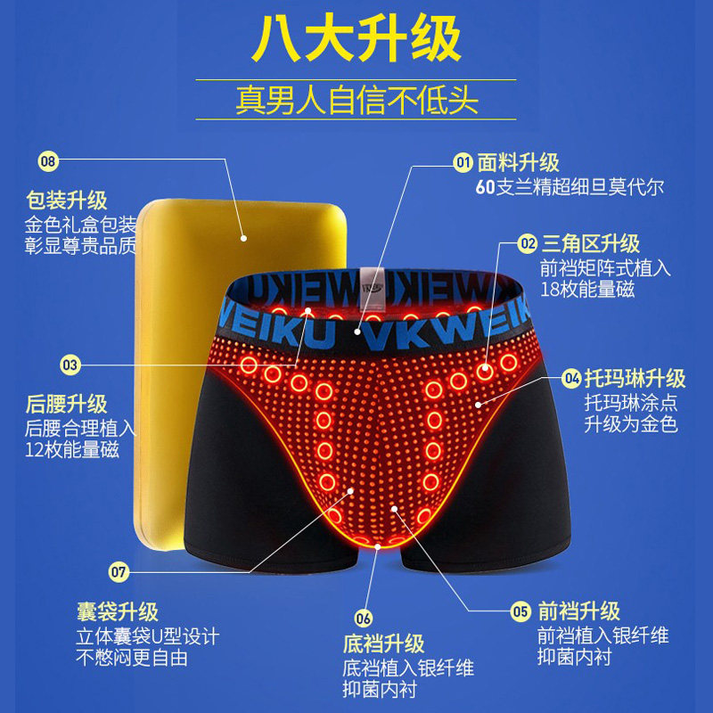 VK英国卫裤官方正品环保健康生理磁石男士按摩内裤增大码平角裤棉