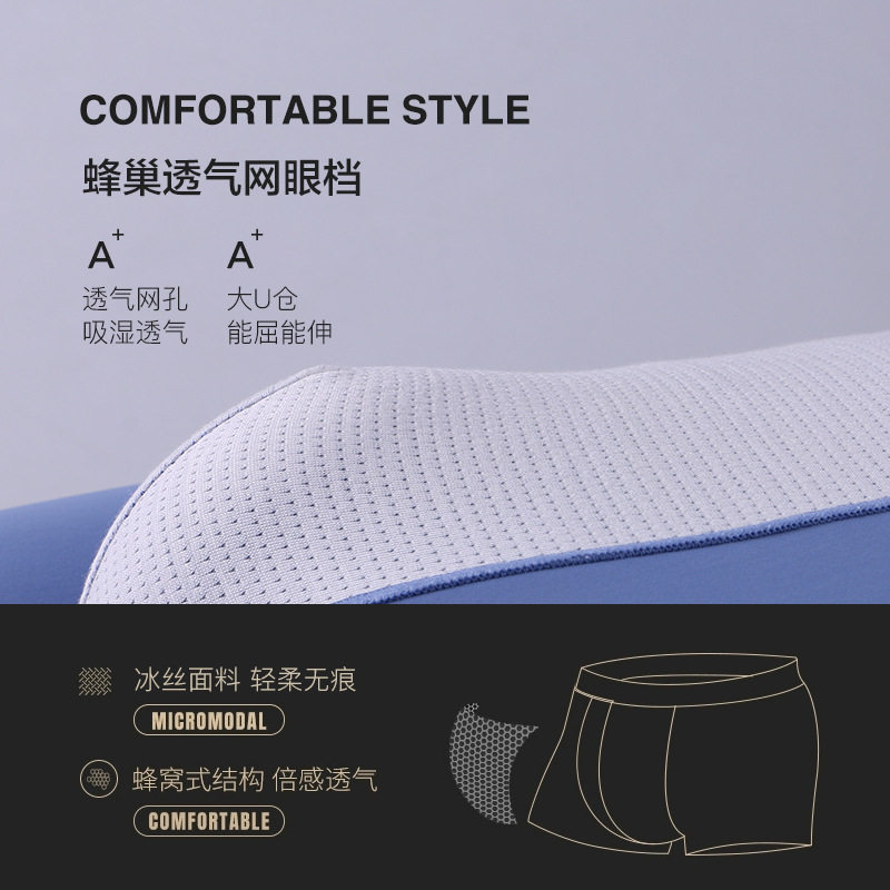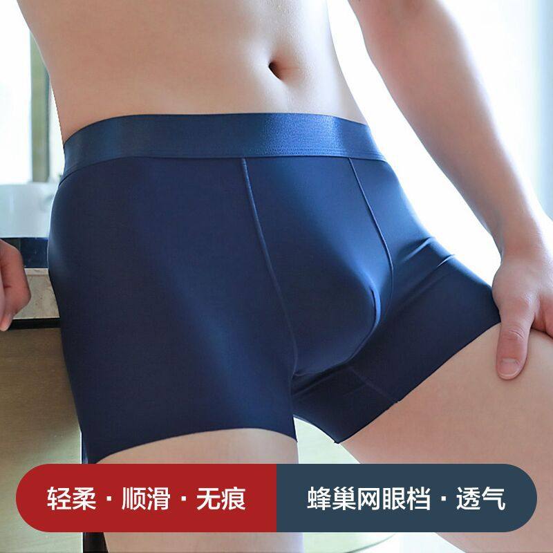3条装 性感男士冰丝一片式无痕透气内裤裸感U凸青年平角中腰男裤