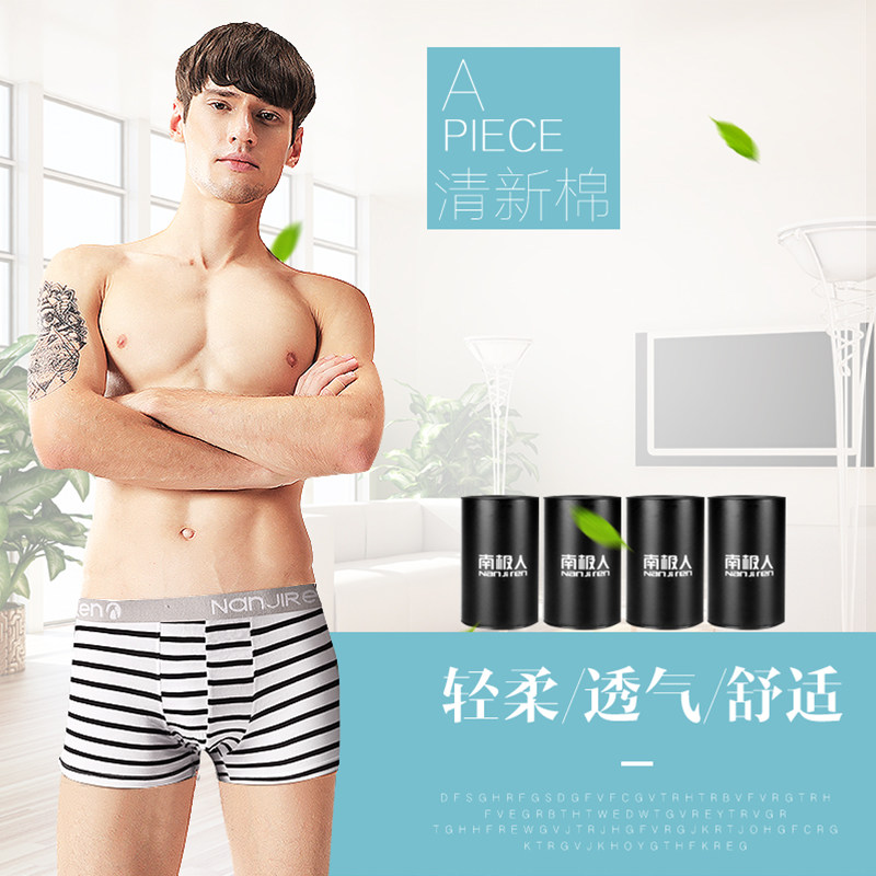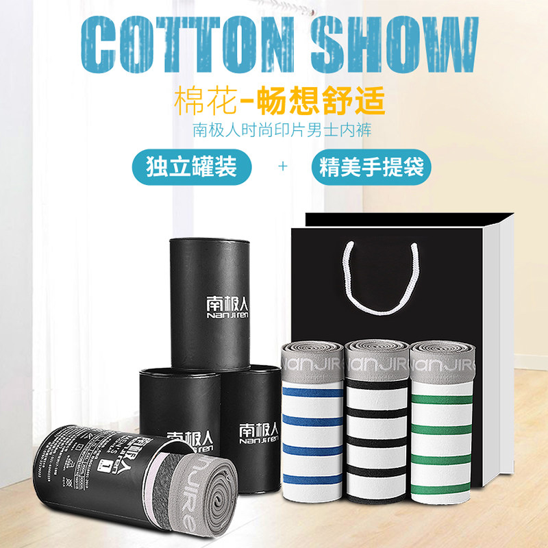 南极人男士内裤男纯棉透气罐装平角裤抗菌全棉男生潮流个性四角裤
