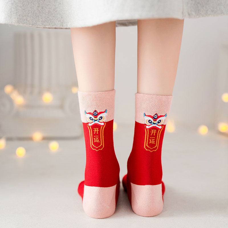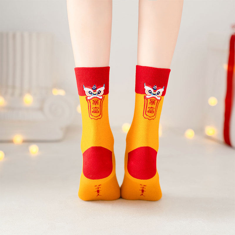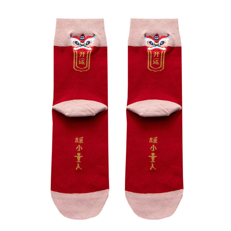 新年本命年红袜子男中筒袜纯棉喜庆结婚情侣男女大红袜踩小人长袜