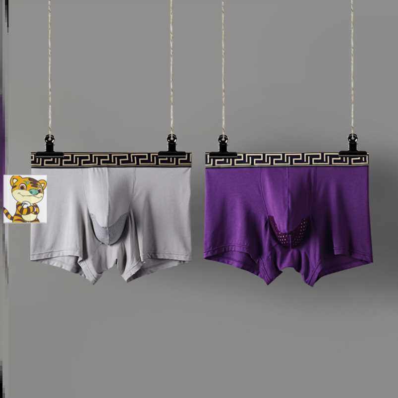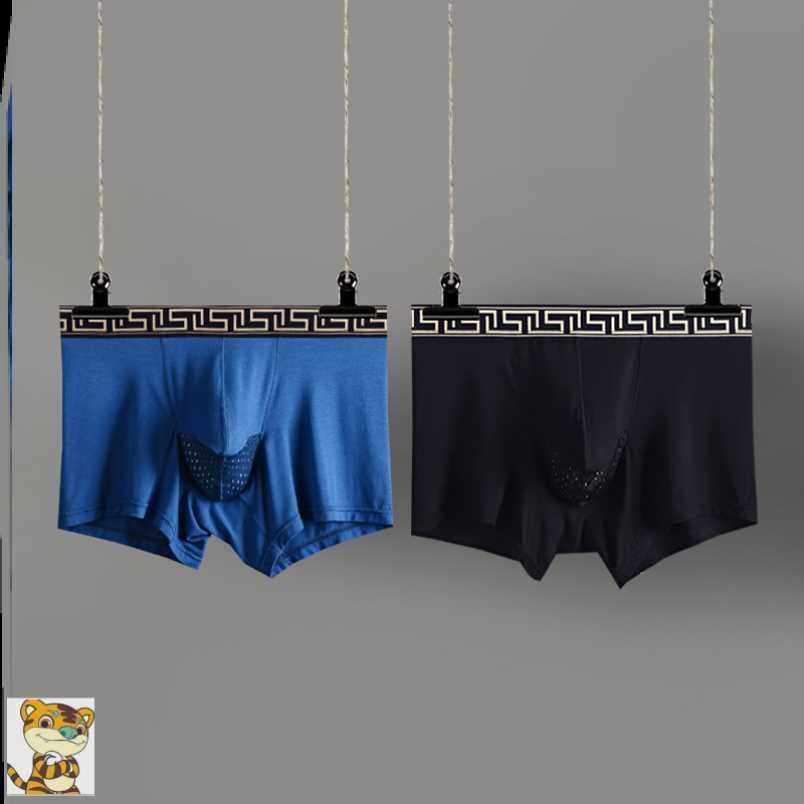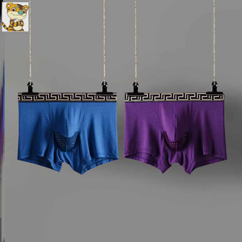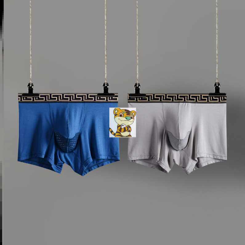 夏枪弹分仓分离式男式莫代尔内裤纯棉U凸透气平角薄加肥四角裤。