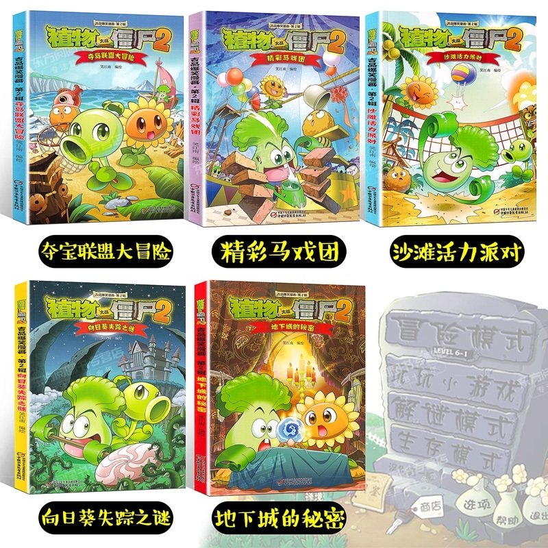 植物大战僵尸2漫画书全集 5册吉品爆笑校园动漫故事绘本儿童书籍6-7-8-9-10-12周岁小学生一二年级恐龙科学版读物全套僵书D