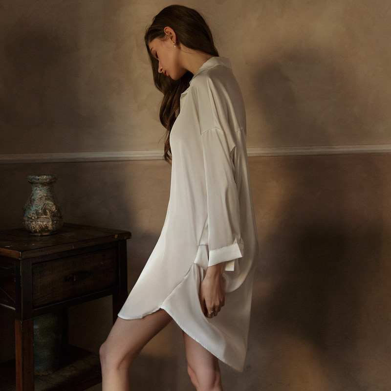 雅小姐性感睡衣女秋季冰丝薄私房睡裙中长款透明可外穿男友风衬衫