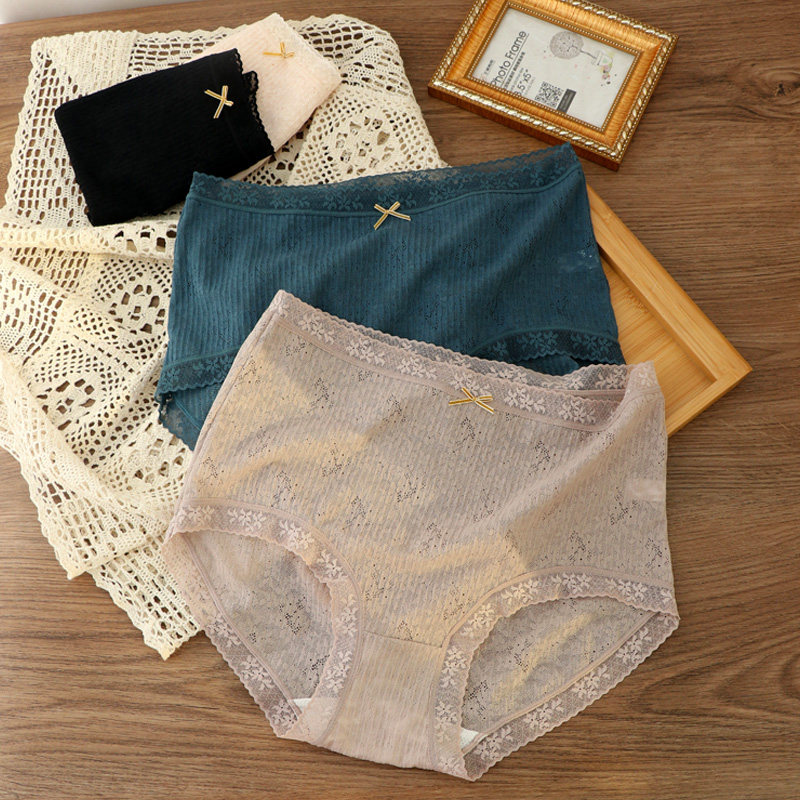 内裤女士大码高腰胖mm200斤 透气抑菌蚕丝裆性感蕾丝夏季薄胖妹妹
