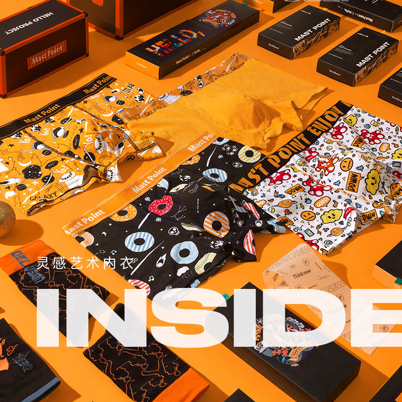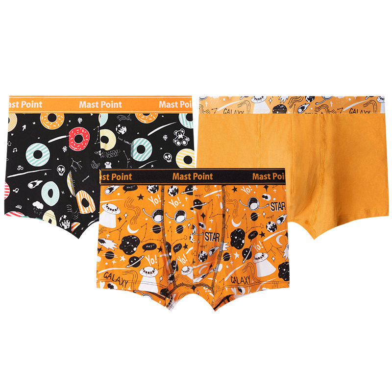 麦左潮牌男士内裤新疆纯棉四角短裤透气平角裤/趣味收藏家/3条