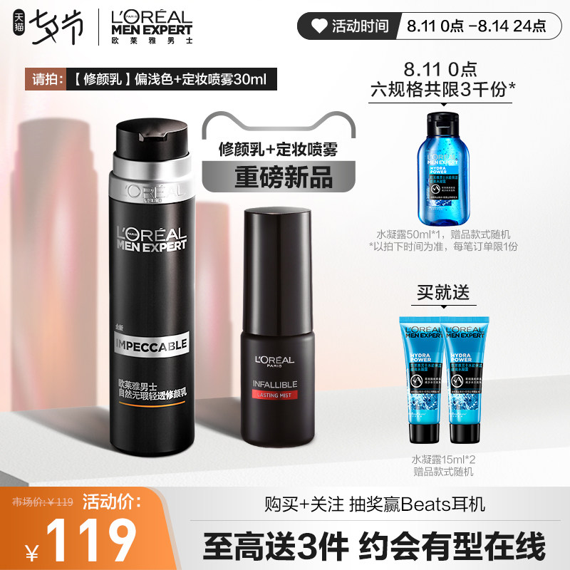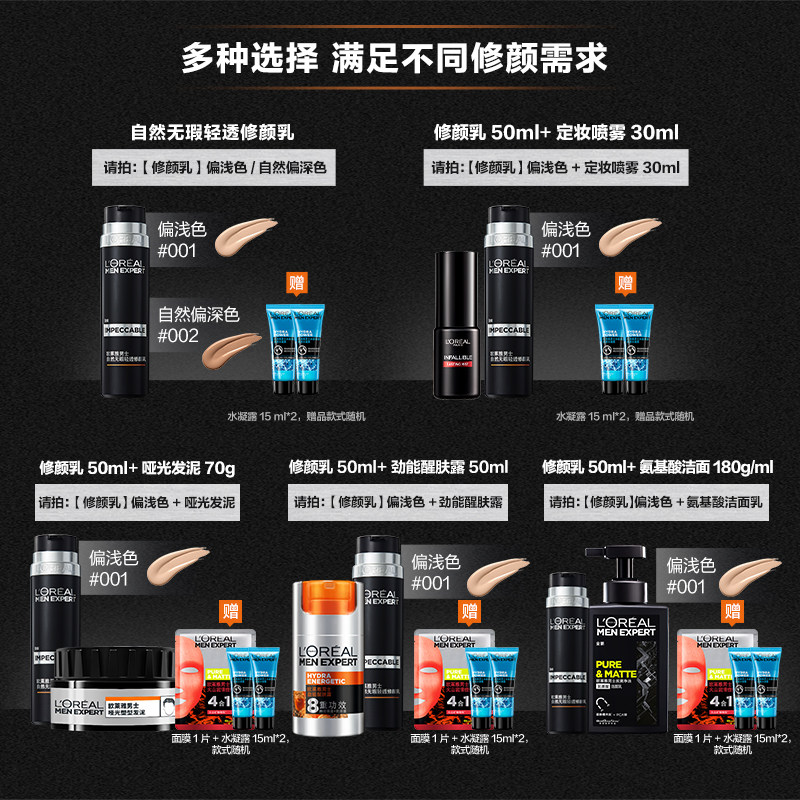 欧莱雅男士专用素颜霜修颜小黑管遮瑕膏遮痘印bb霜粉底液化妆品男