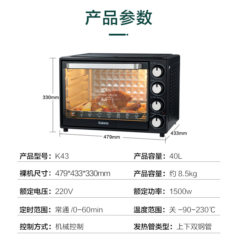 40升大容量 上下独立控温 内置专业炉灯