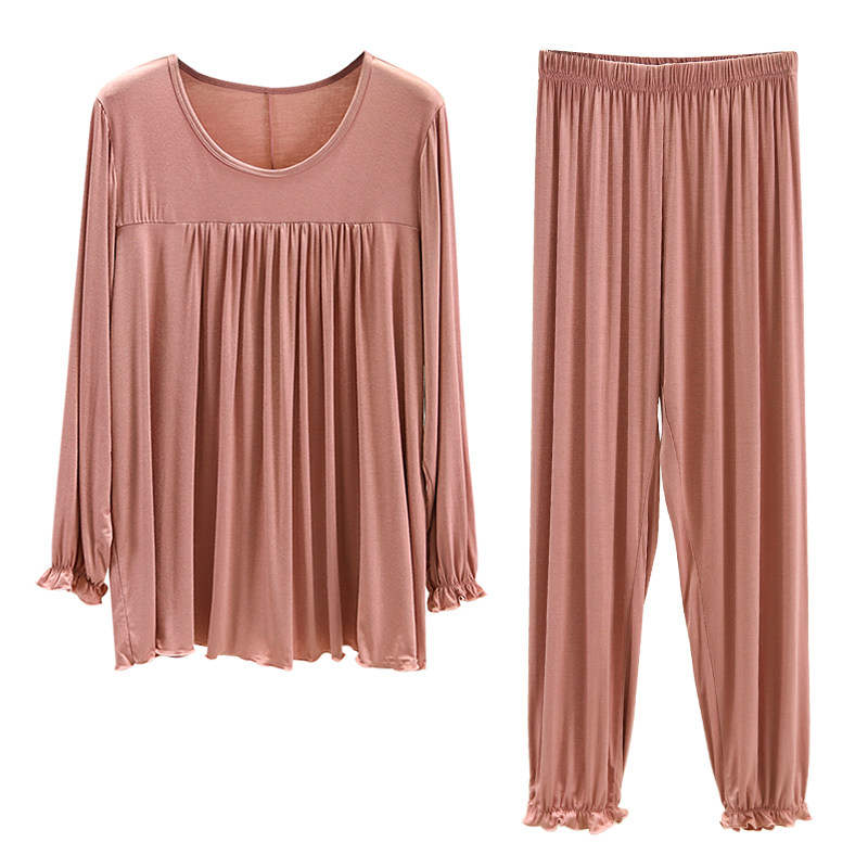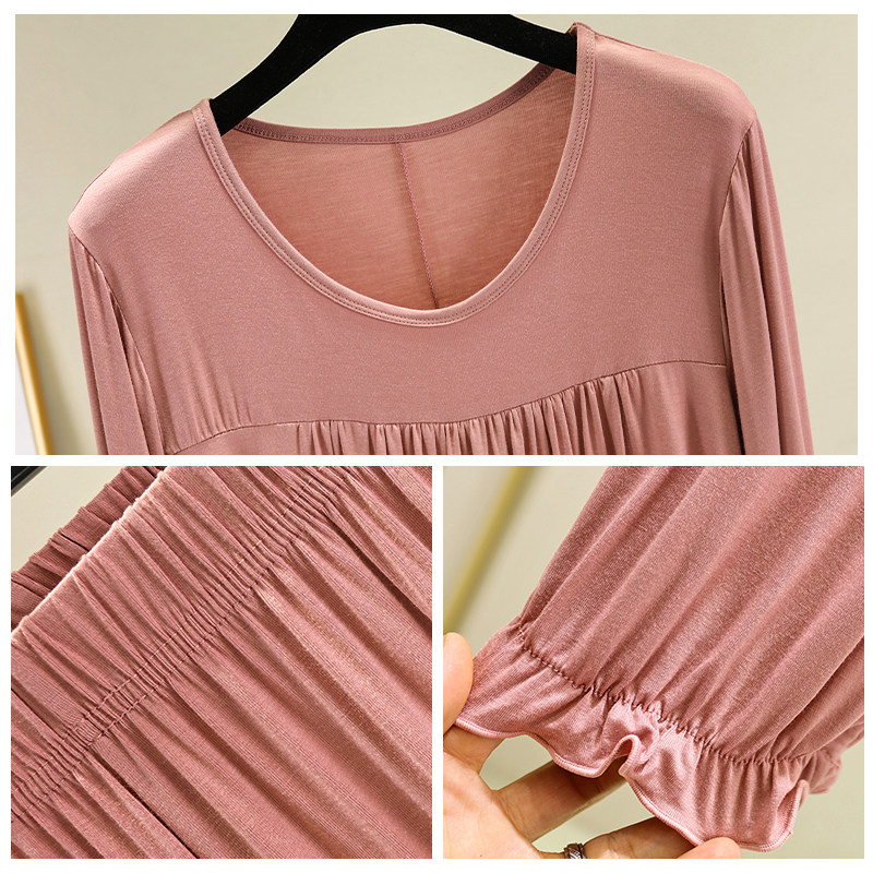 莫代尔睡衣女春秋长袖圆领家居服夏冰丝大码胖mm可出门休闲两件装