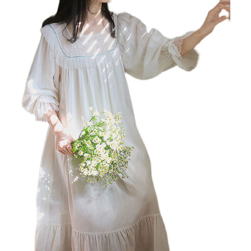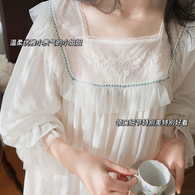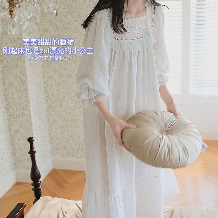 韩国睡裙纯棉纱布春秋薄款可爱公主风宫廷法式宽松甜美蕾丝睡衣女