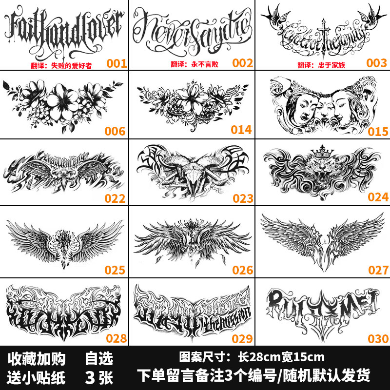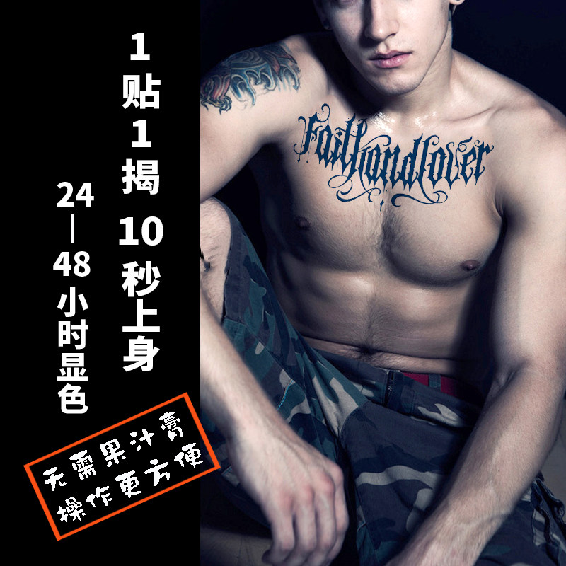 胸前草本植物果汁纹身贴防水持久不反光草木文身贴纸半永久大图男