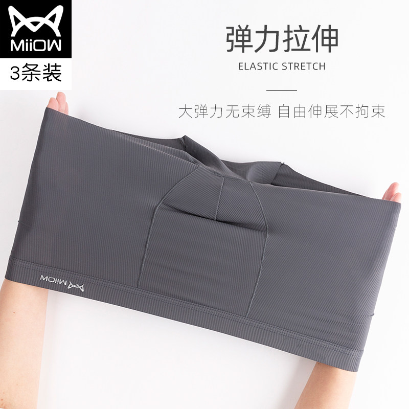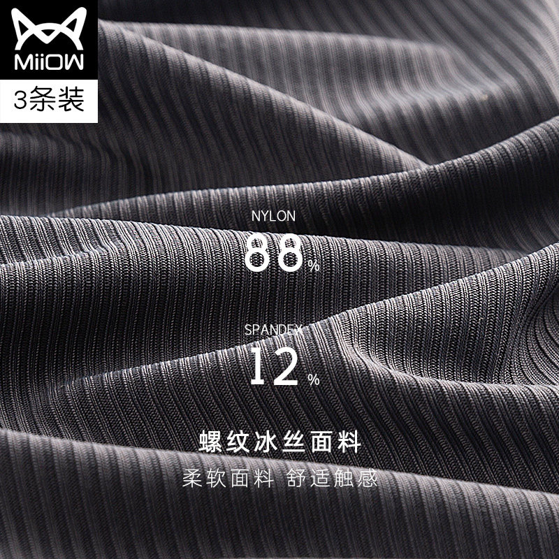 猫人内裤男士螺纹冰丝无痕透气石墨烯抗菌裆四角裤大码平角短裤潮