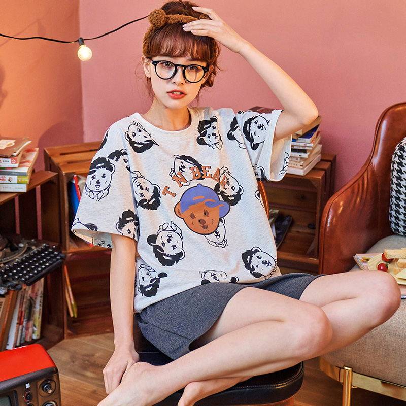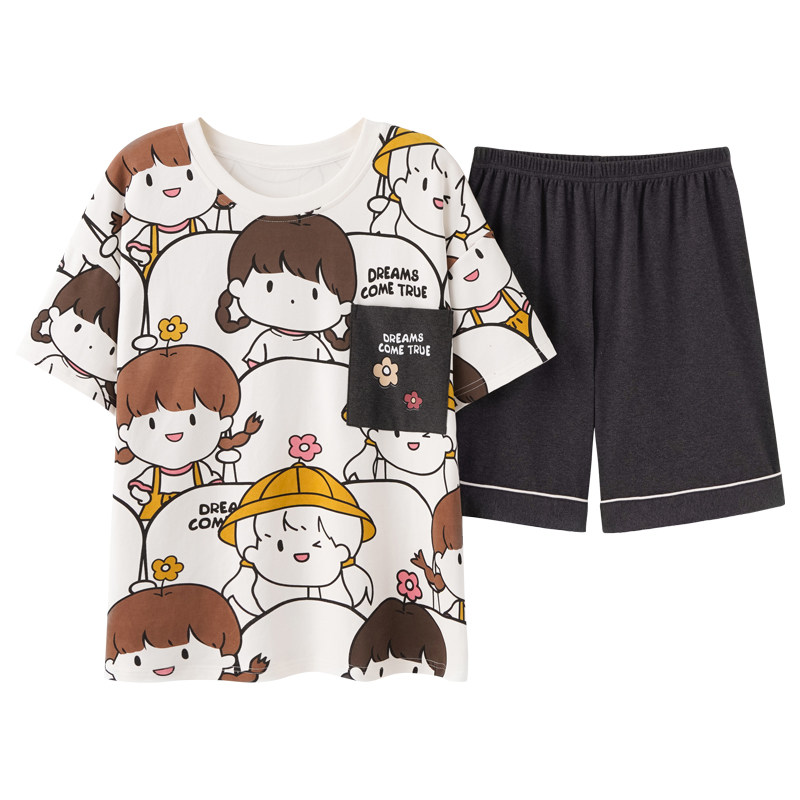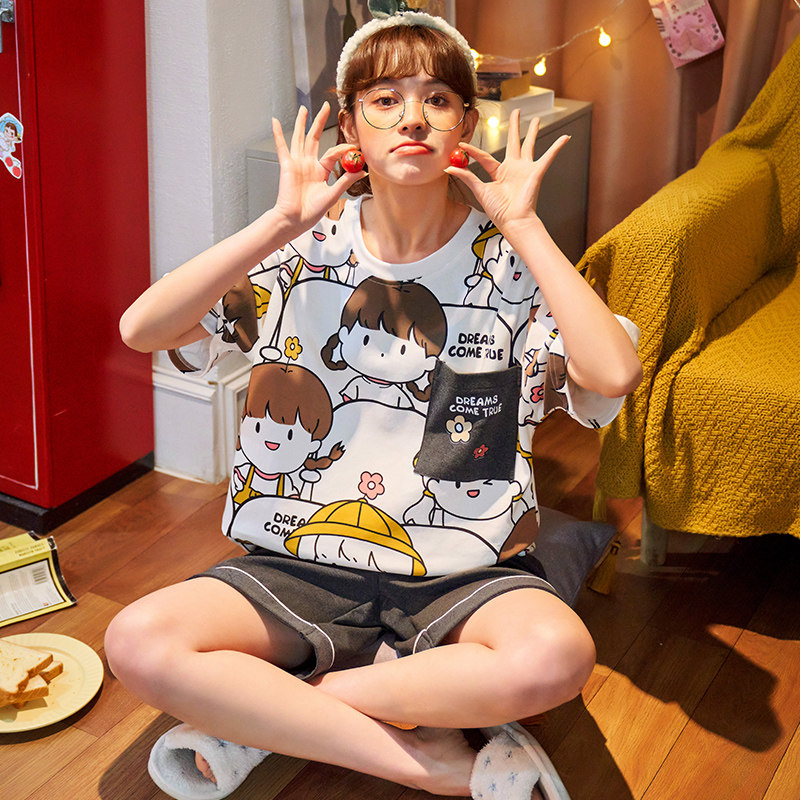 夏季纯棉睡衣女士2021年新款ins风 短袖春夏天薄款家居服两件套装