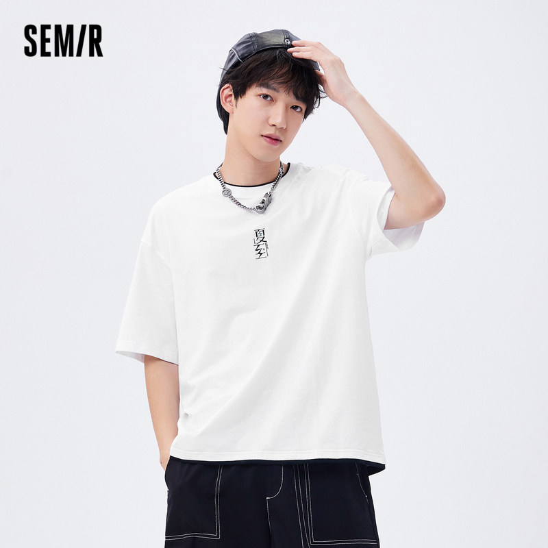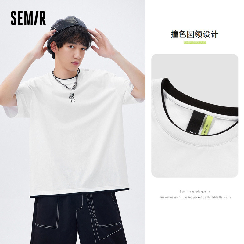 宽松版型 撞色印花 假两件设计