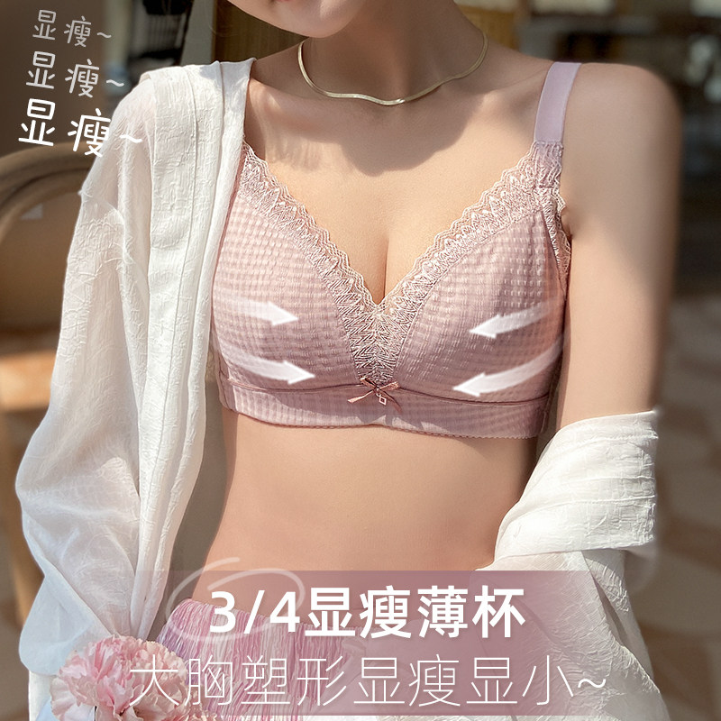 内衣女大胸显小缩胸夏超薄款调整型收副乳防下垂无钢圈大码文胸罩