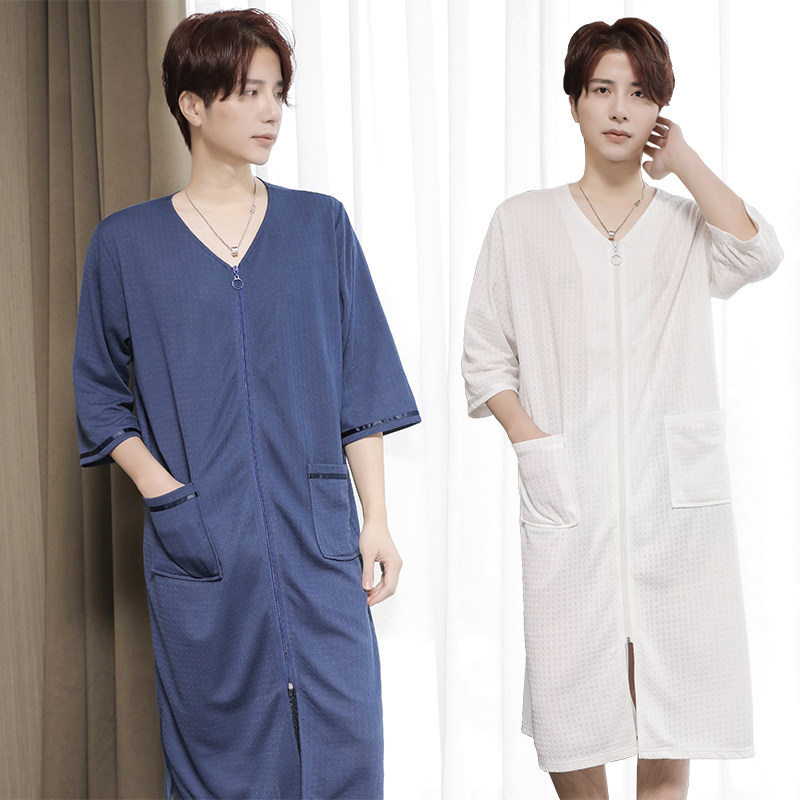男士睡裙春夏薄款连体睡衣加肥加大码居家服宽松一体式浴袍洗澡用