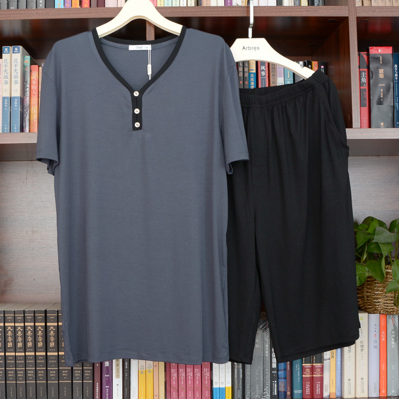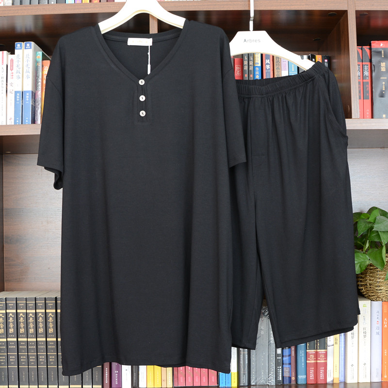 200斤300斤特大码莫代尔短袖短裤中年男夏家居服睡衣加肥加大宽松