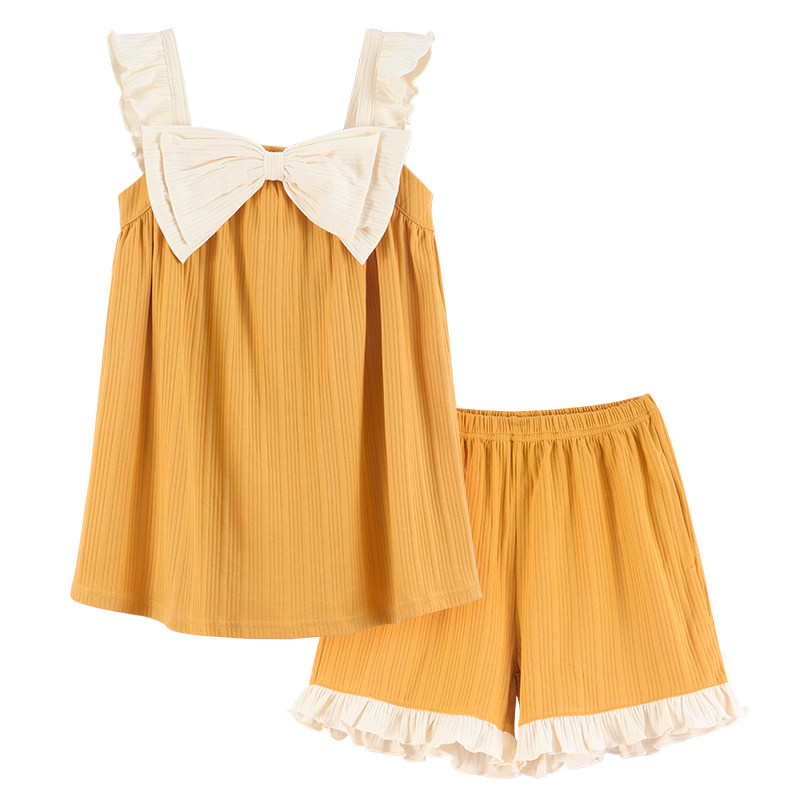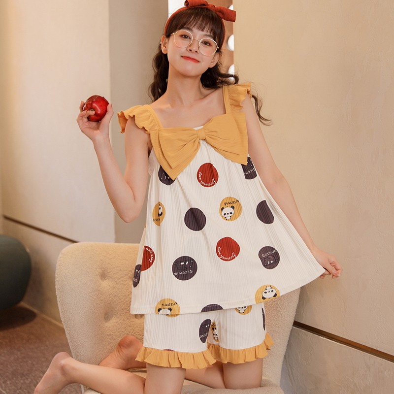 睡衣女夏季纯棉薄款性感吊带短裤两件套装无袖背心春夏甜美家居服