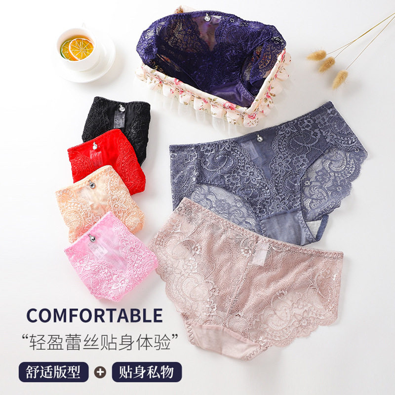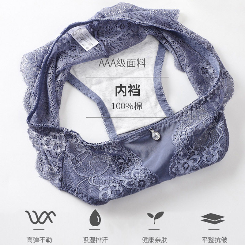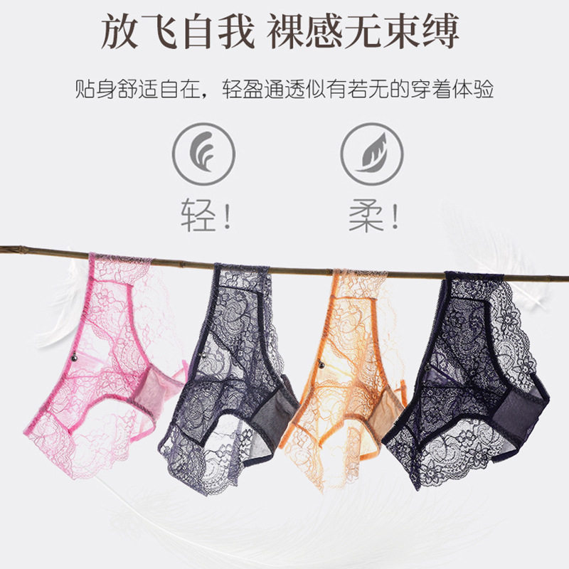 4条浪莎蕾丝内裤少女心纯棉女士蕾丝夏季可爱日系冰丝透明gzk3
