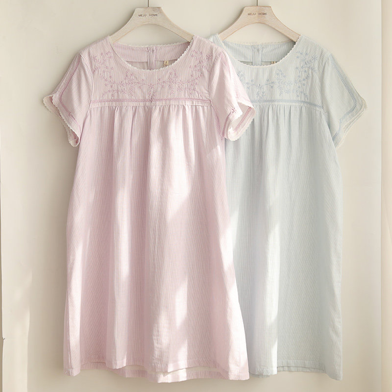 睡裙女夏季短袖薄款纯棉纱布甜美宫廷风日系清新可外穿家居服裙子