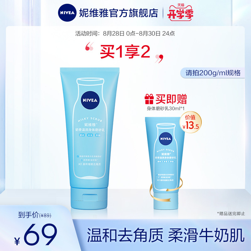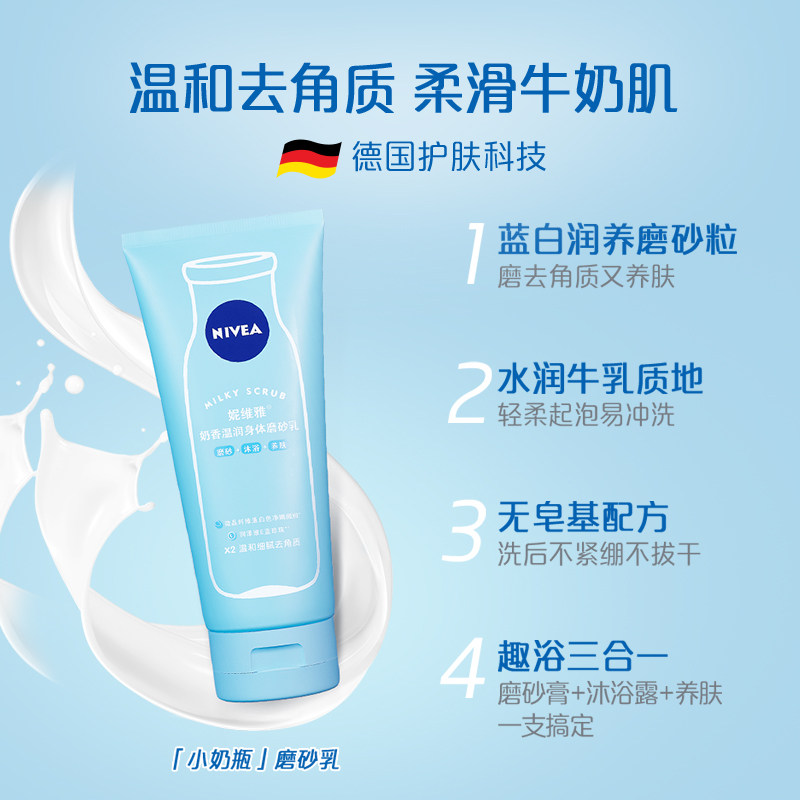 妮维雅小奶瓶温和去角质柔滑奶香养肤全身滋润清洁磨砂乳官方正品