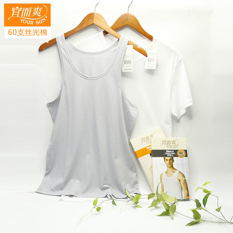 宜而爽60支男女纯棉背心高支纱丝光棉专柜盒装宽松大码短袖2件装