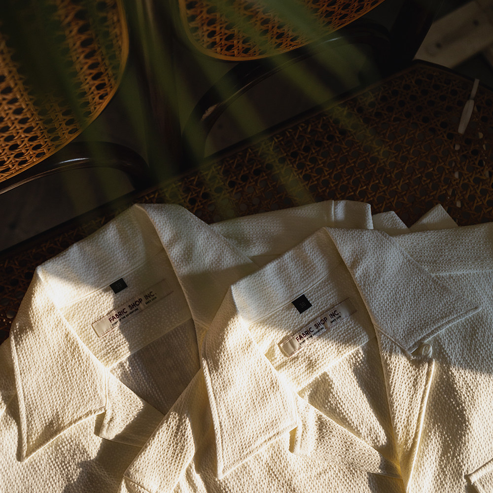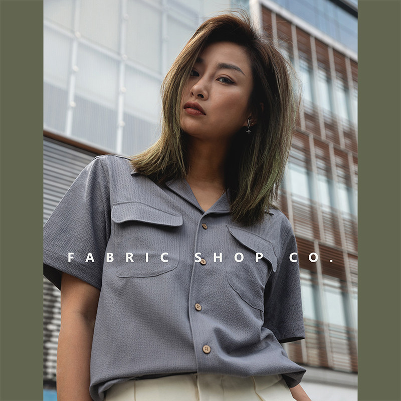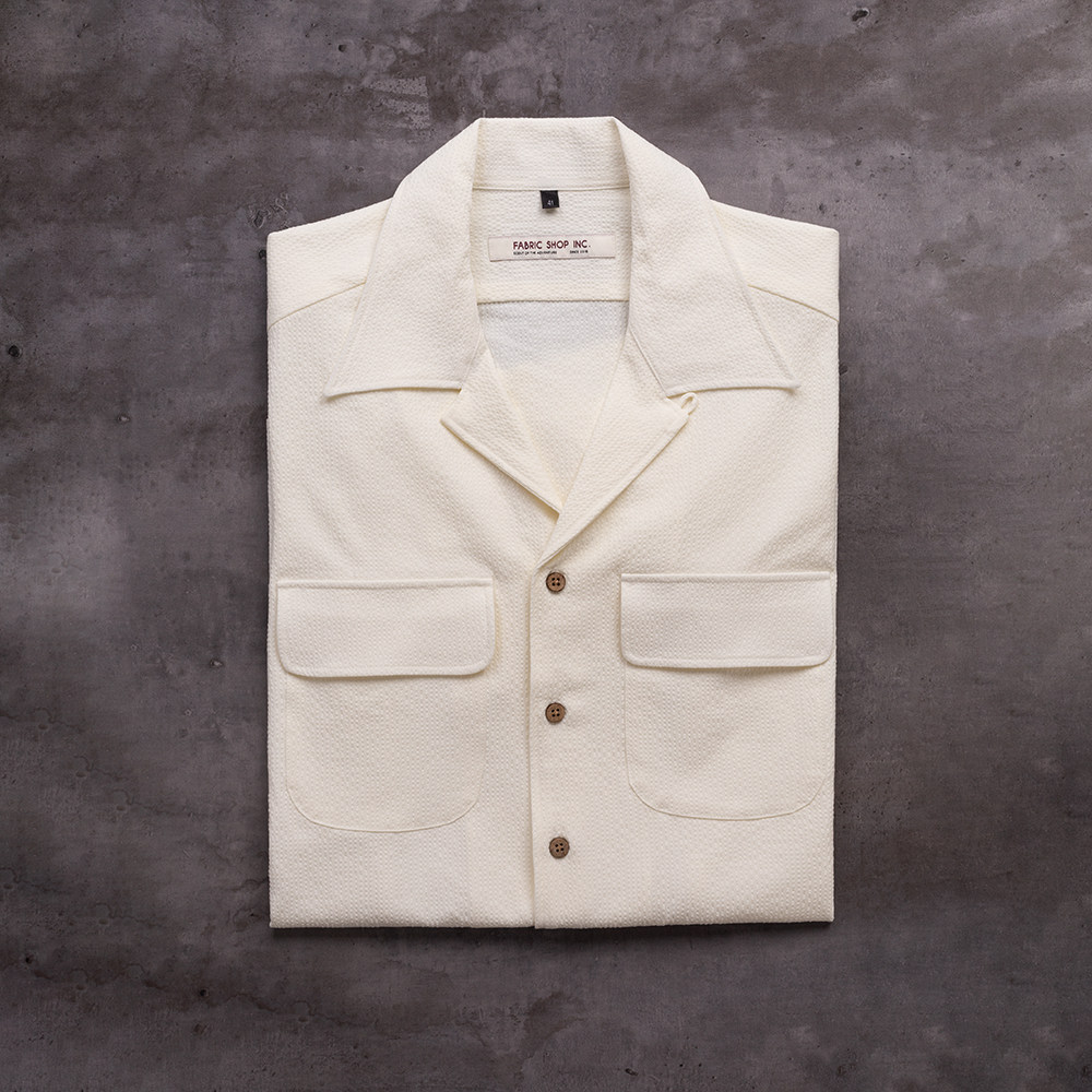FABRIC SHOP 泡泡纱古巴领衬衫男女 夏季休闲西装内搭短袖白衬衫