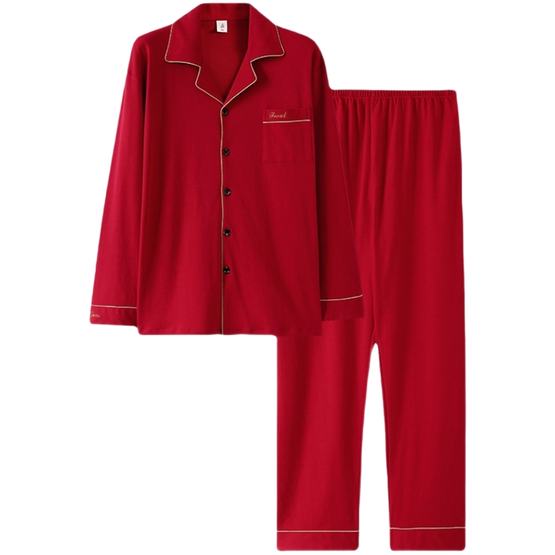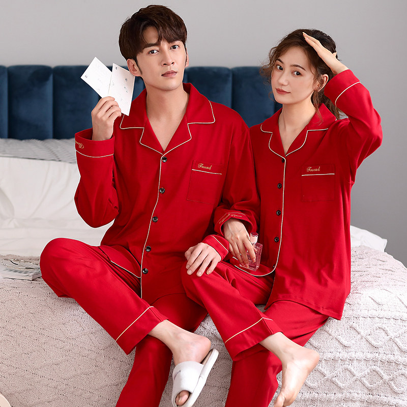 猫人本命年大红春秋季纯棉情侣睡衣长袖长裤两件套喜庆高档家居服