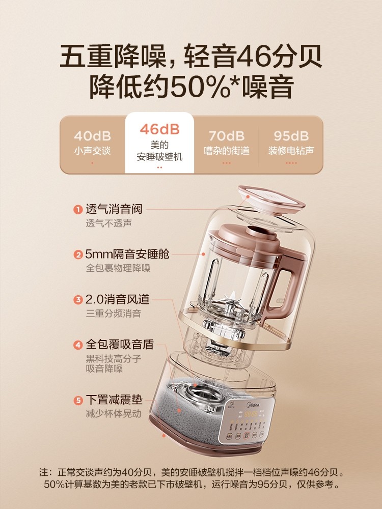 美的安睡破壁机小型全自动家用料理轻音多功能豆浆榨汁机MJPB80S2