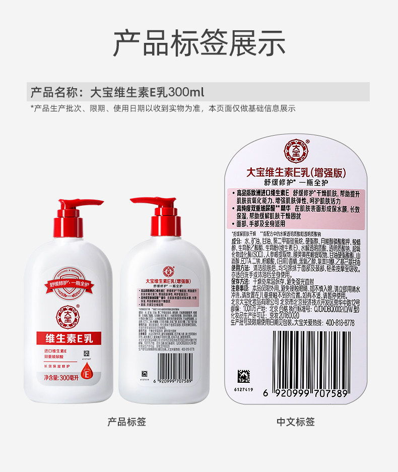 大宝维生素e乳 补水保湿修护护肤面霜SOD滋润身体乳男女学生官方