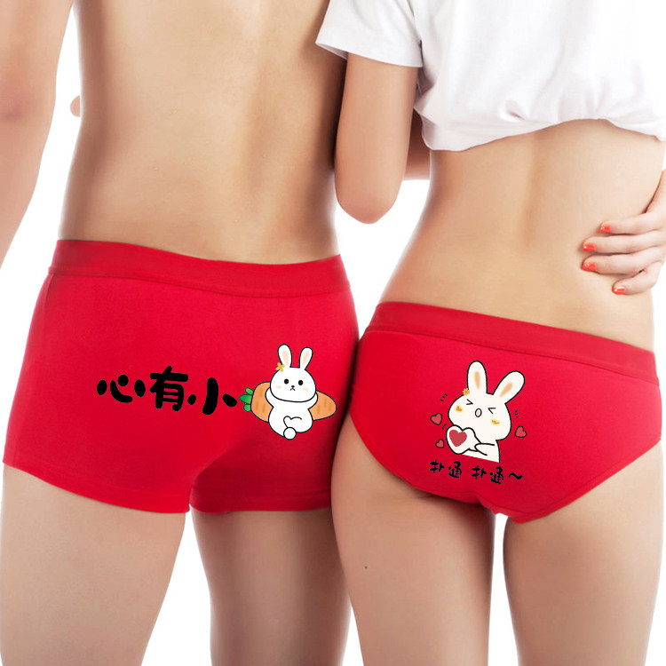 本命年结婚情侣内裤兔年男平角女三角喜庆过年礼物纯棉耐穿短裤衩